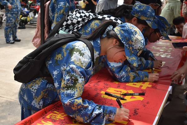 上午9点,商学院在学校一食堂门口启动“铸国魂,树豪情壮志”条幅签字仪式。同学们在条幅上郑重签名,表达牢记历史,居安思危。活动中同学们表示一定不忘国耻、珍爱和平、勤奋学习,牢记时代赋予的责任和使命,以实际行动建设祖国、报效祖国。
