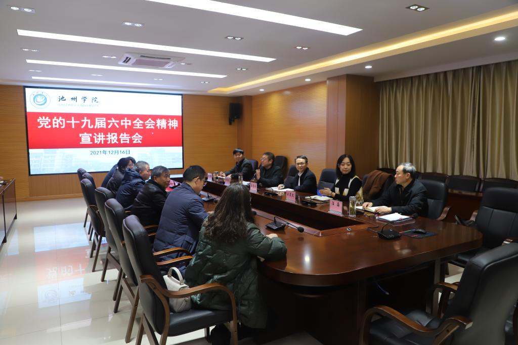 王国雨到会指导了学校党委副书记崔国发为文学与传媒学院师生开展的党的十九届六中全会宣讲会。