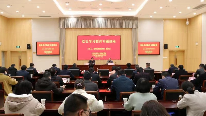 3月19日上午,beat365马克思主义学院鲍红信博士应邀为池州市人民政府党组和机关党组作党史学习教育专题讲座。池州市政府秘书长盛国星主持了讲座。市政府党组和机关党组共70多位党员干部参加了活动。