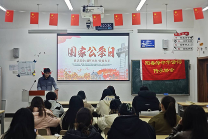 开展社团活动,践行初心使命。社会实践者协会举办“勿忘国耻,圆梦中华”微宣讲,呼吁同学们不忘历史,珍惜当下,自强不息、发奋学习,把个人梦想与国家前途命运紧密相连,共同创造人类的美好未来;研学旅游研习社组织观看爱国主义电影《我和我的父辈》,激发爱国情感和民族自豪感;阳春泽中华诗词传承协会开展“国祭英魂,共筑和平”主题活动,集体诵读《和平宣言》,表达对南京大屠杀遇难同胞的哀思和建设现代化强国的坚强决心,传递和平愿景。