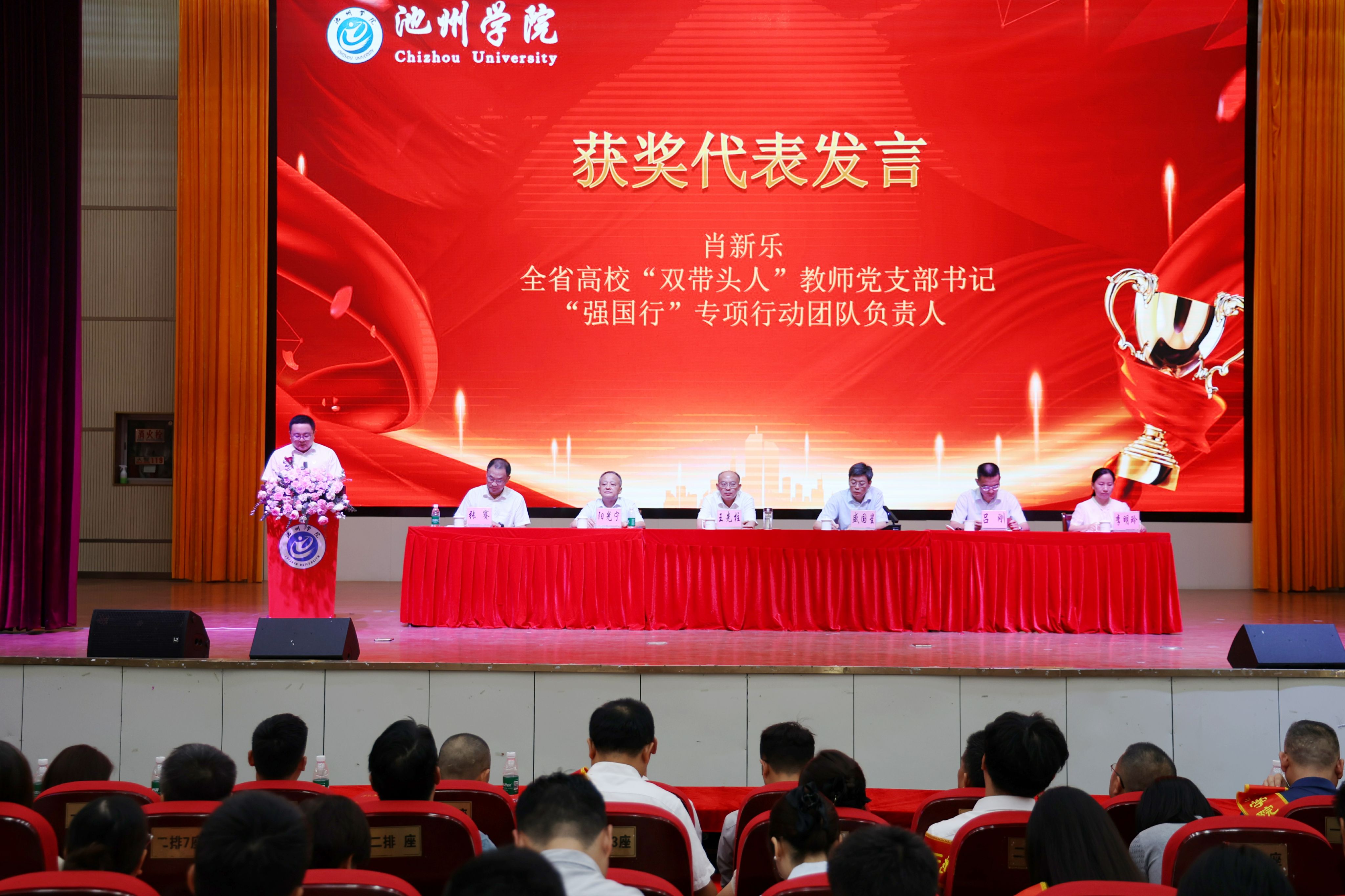 全省高校“双带头人”教师党支部书记“强国行”专项行动团队负责人肖新乐作为受表彰代表发言。