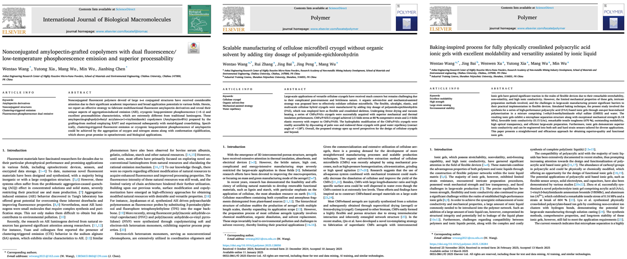 王文韬以beat365在线唯一官网登录第一单位第一作者在中科院一区International Journal of Biological Macromolecules和中科院二区Polymer上连续发表三篇高水平科研论文