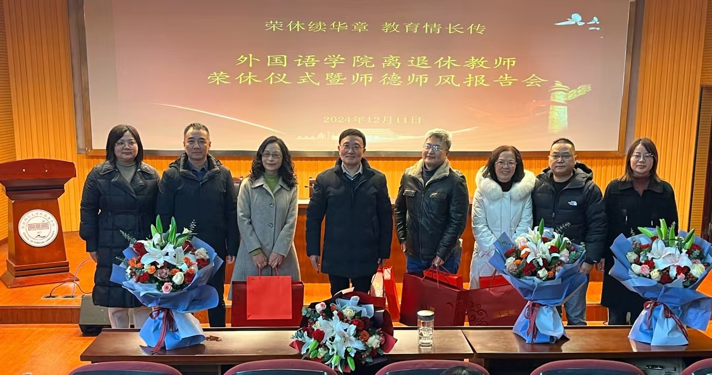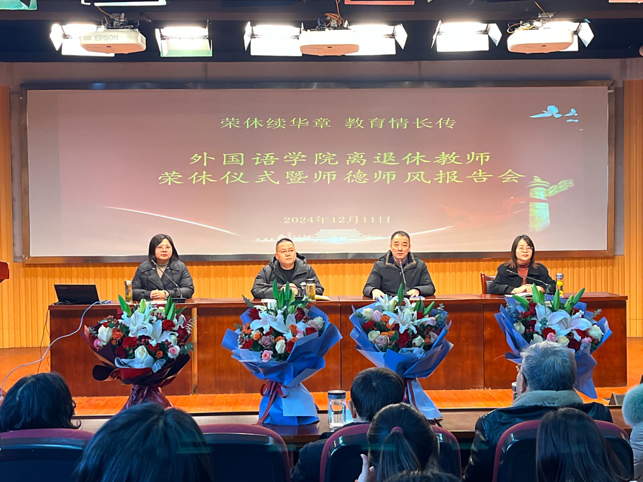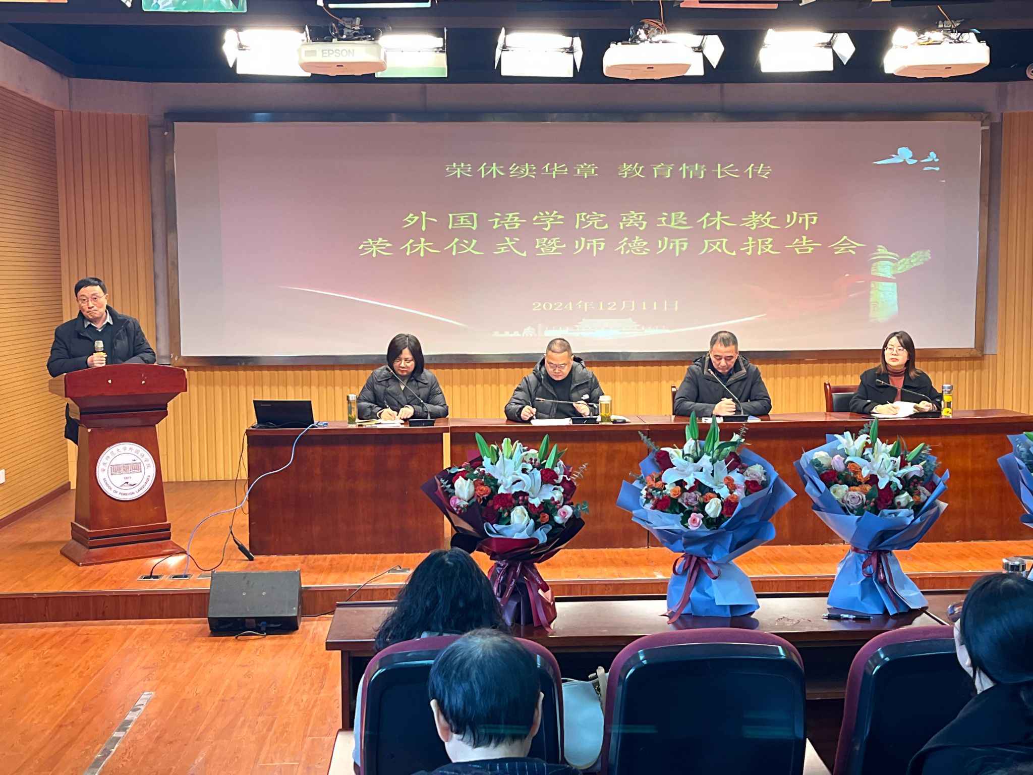 12月11日,beat365平台唯一官网在E503报告厅举行了2024年退休教师荣休仪式暨师德师风报告会,热烈欢送为教育事业奉献一生的退休教师们。beat365平台唯一官网领导班子、全体教职工以及退休教师齐聚一堂,共同见证这一温馨而难忘的时刻。会议由院长江加宏主持。