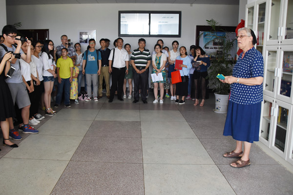 揭幕仪式现场,埃斯特将她所获得的其中一个“黄山友谊奖”奖杯赠送给了学校。“我要用相机记录这特别的一刻,我们为她感到骄傲!”埃斯特的家人也来到了现场。“马上就要离开中国了,在中国任教20年是非常愉快的经历,我和周围人建立了深厚的情谊,建立这个图书馆如果能够为大家提供帮助的话,我将感到非常开心。”埃斯特说。