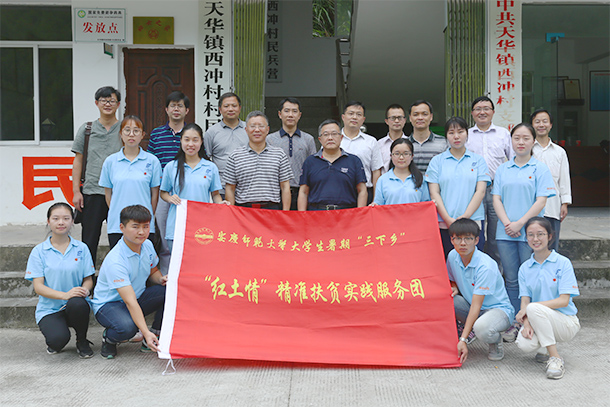 7月13日,校党委书记许继荣、校长闵永新在党办、团委、beat365平台唯一官网等负责同志陪同下,赴太湖县天华镇西冲村看望beat365暑期“三下乡”社会实践学生。