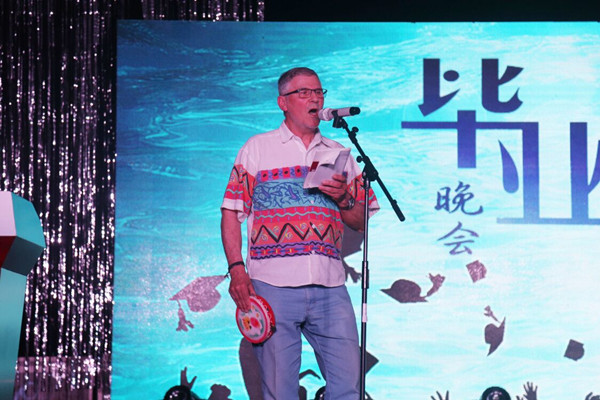 “斯蒂芬老师和往日一样和蔼,充满活力,很感动他愿意不远千里参加我们的毕业晚会,感谢他的付出。”合作英语2014级(1)班的李亚辉说