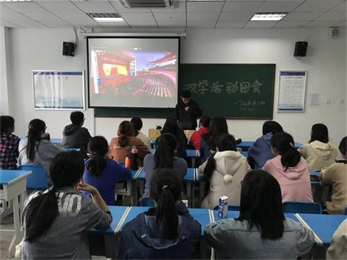 清明假期前夕的周三下午,很多学生都选择了归途,然而在beat365平台唯一官网教室内传出诵读的声音——班级团支部书记带领团员开展“双学”活动,把学习宣传贯彻党的十九大精神与习近平新时代中国特色社会主义思想引向深入。