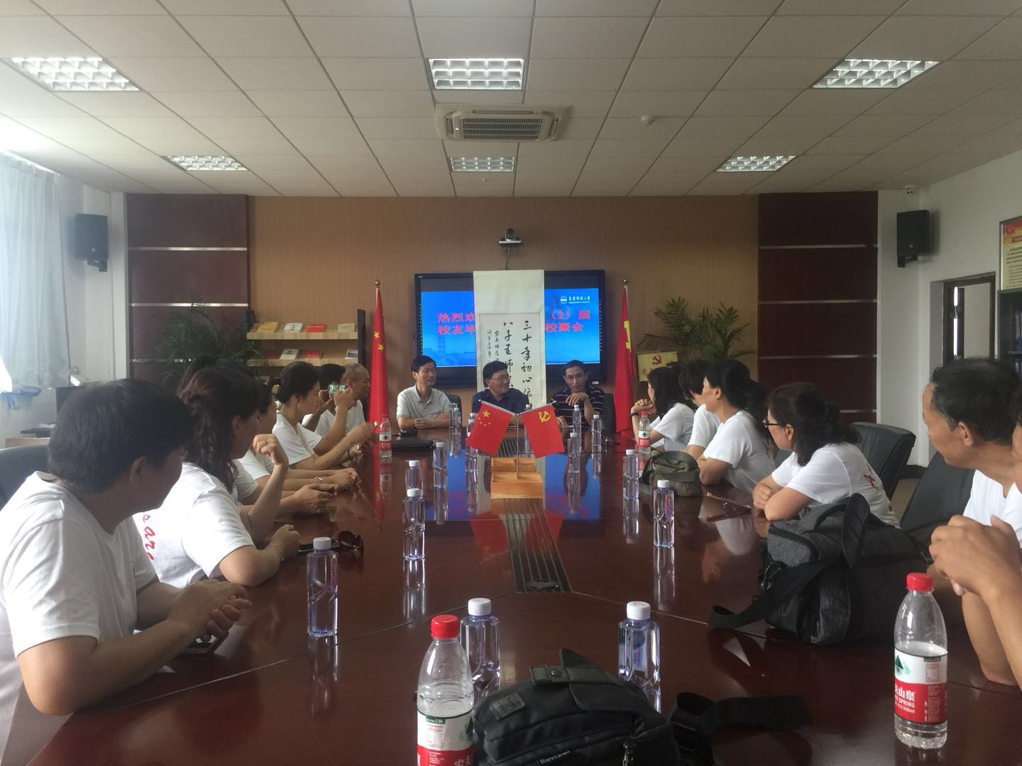 8月21日,beat365平台唯一官网党政领导在会议室热情接待参加外语系88(2)届毕业三十周年返校聚会的校友。