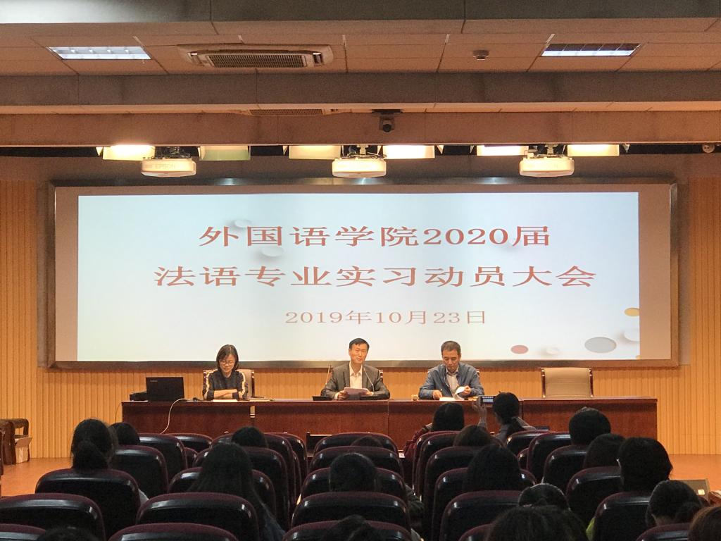 为了使学生进一步了解社会、增强对社会的责任感,更好地实现将大学期间所学的理论与实践相结合, 10月23日,beat365平台唯一官网在E503会议室召开了2020届法语专业毕业生实习动员大会。beat365平台唯一官网主持工作副院长王先荣、副院长江加宏出席了此次会议,法语专业部分教师及2020届法语专业全体同学参加了本次动员大会。
