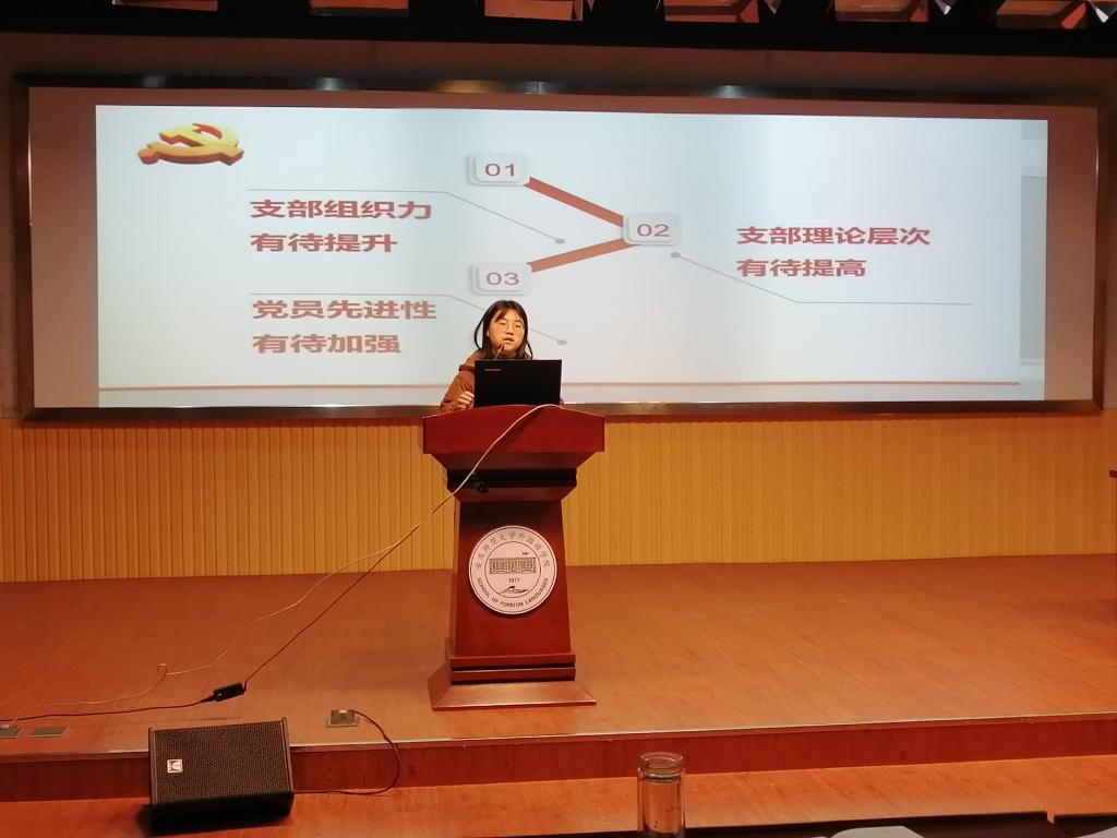郝涂根强调,今后党委和支部工作要对表对标高校“双创”标杆院系,将工作的重点放在全面贯彻落实校党委的指示精神上来,聚焦学校的发展目标和发展思路,充分发挥党委核心、支部堡垒和党员的模范带头作用;要紧扣高等教育职能,以抓党建促进学院科学研究、人才培养、社会服务和文化传承创新等工作不断上新台阶;要从思想、组织、纪律等方面抓好党员队伍建设,打造一支思想过硬、组织纪律严明的党员队伍,并努力抓好党员的政治、业务学习,落实思想政治教育工作,为学院的发展提供强有力的组织保障、思想保障。