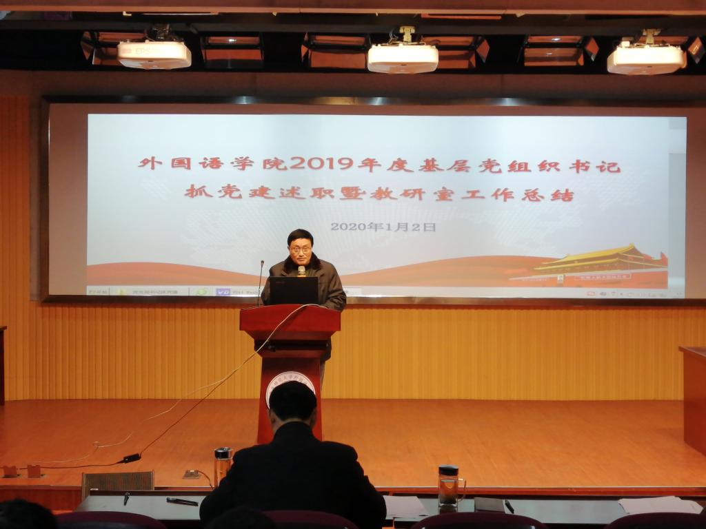 根据《关于做好2019年度基层党组织书记抓党建述职评议考核工作的通知》精神,1月2日下午,beat365平台唯一官网党委举行2019年度基层党组织书记抓党建述职评议考核工作。5个学生党支部书记和6个教工党支部书记围绕全面推进党的政治建设、思想建设、组织建设、作风建设、纪律建设和制度建设,逐一上台汇报展示。学院学位委员会、学术委员会、教学工作委员会、第一届教代会执委会委员列席会议并为支部工作量化评分。