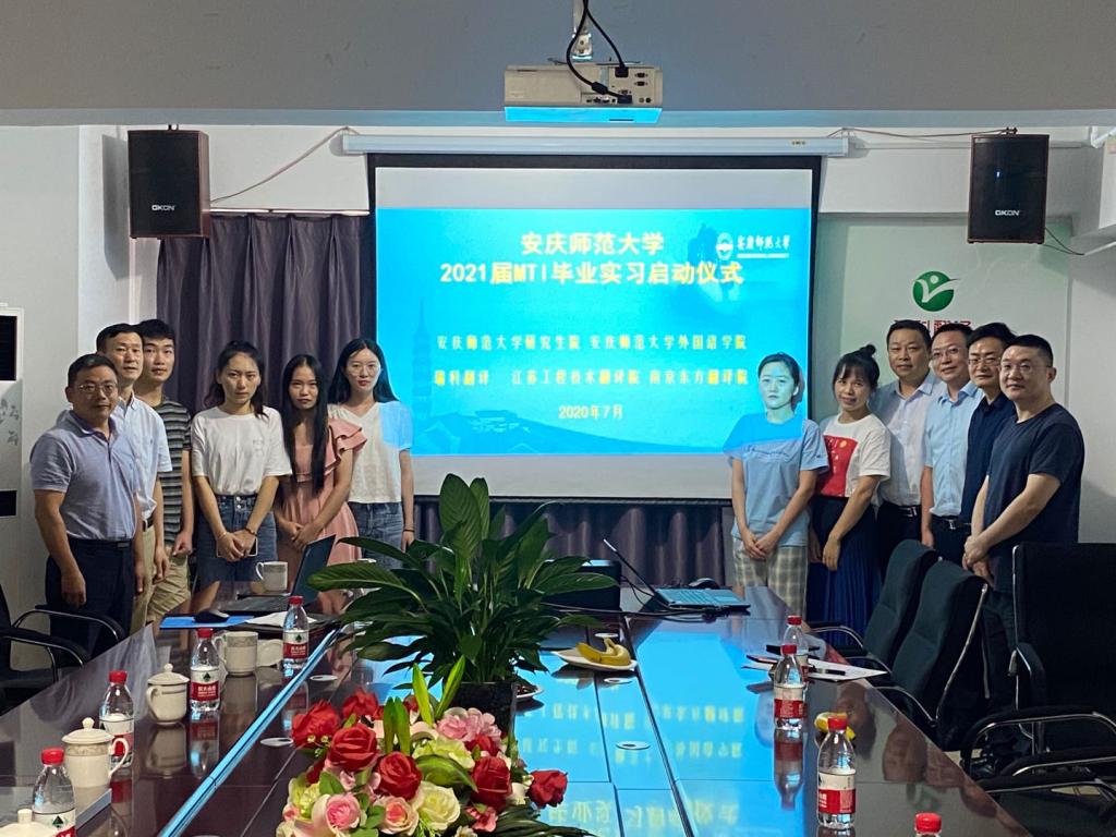 7月27日,“beat365平台唯一官网翻译人才协同育人基地”揭牌仪式暨beat365平台唯一官网2021届MTI(翻译专业学位研究生)毕业实习启动仪式在南京瑞科翻译有限公司举行。beat365平台唯一官网院长王先荣、研究生院副院长朱灵群、MTI中心负责人黄全灿老师,瑞科翻译有限公司董事长刘克超、江苏工程技术翻译院总经理包亚芝、东方翻译院总经理夏中华先生,2019级MTI实习生参加了此次活动。