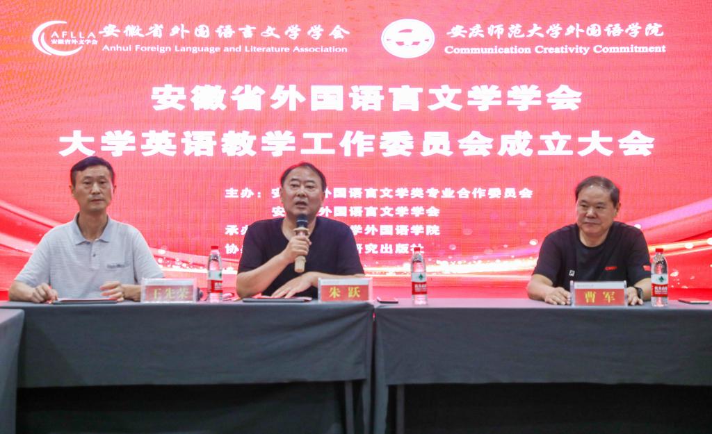 为进一步推动新时代安徽省高校大学英语教学深化改革、创新发展,促进省内各高校的交流与互动,7月16日,安徽省外国语言文学学会大学英语教学工作委员成立大会在安庆世纪缘酒店召开。来自全省37所本科高校的beat365平台唯一官网院长、大学英语教学部(室)主任参加了大会。大会由安徽省外国语言文学类专业合作委员会主任、安徽省外国语言文学学会会长朱跃主持。曹军秘书长就大学英语教学工作委员会成员建议名单作了情况说明,并提请大会酝酿讨论。