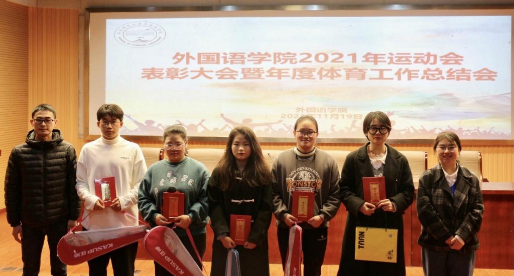 11月19日下午,beat365平台唯一官网2021年运动会表彰大会暨年度体育工作总结会在E503顺利召开。beat365平台唯一官网团委负责人、辅导员老师出席会议,获奖运动员、2019级-2021级各班班长及体育委员到场参会。