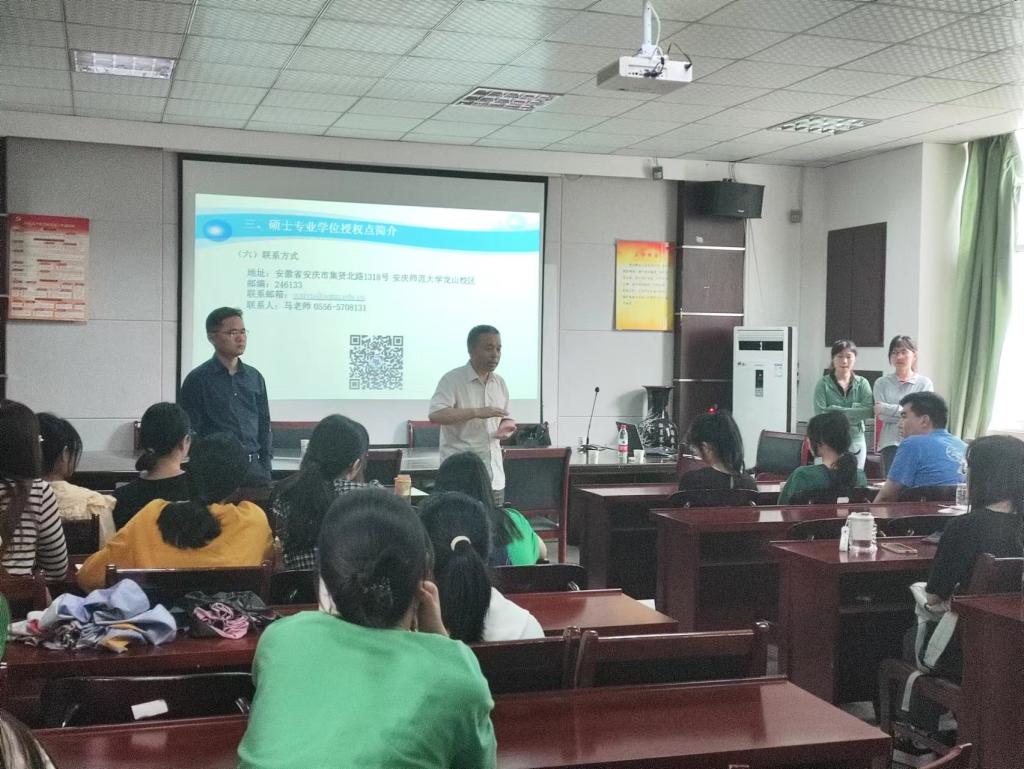 为了提升我院专业硕士点的影响力和辐射力,9月22日-23日,学院副院长黄全灿、硕士生导师代表陈水生、王平、研究生秘书马龙及在校研究生代表一行六人先后奔赴省内四所高校,开展线下招生宣传。宣讲会上,黄全灿全面介绍了我院教学特色、人才培养优势以及研究生招生政策、导师团队、科研成果、以及研究生培养和奖助体系等,帮助考生更好地了解院情。学科硕士生导师王平及翻译硕士生导师陈水生分别介绍了我院两个硕士点的具体优势、特色,并与同学们进行了交流互动,鼓励广大同学做好考研规划,明确考研目标,扎实做好复习迎考工作。
