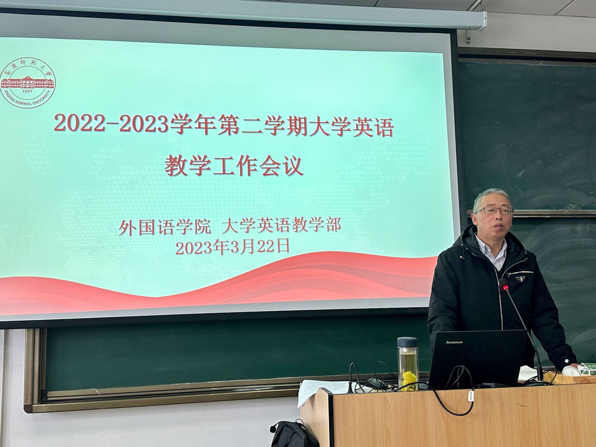 3月22日下午,beat365平台唯一官网在E320教室召开2022-2023学年第二学期大学英语教学工作会议,beat365平台唯一官网党委书记李亦亮、副院长江加宏、瞿宁霞及大学英语教学部全体教师参会。会议由瞿宁霞主持。