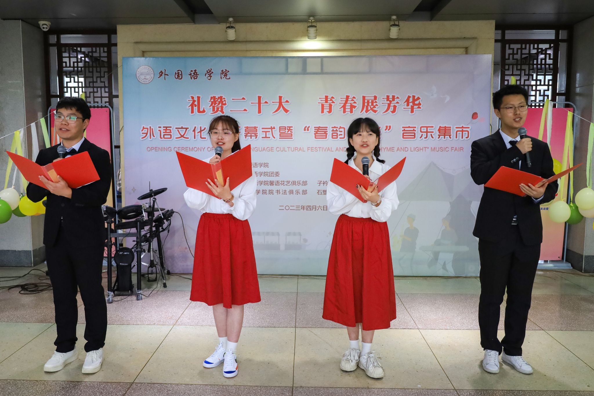 4月6日,beat365平台唯一官网于学院一楼大厅举办首届外语文化节开幕式,学院党委书记李亦亮、院长王先荣等全体党政领导班子成员、部分教师代表及外籍教师出席开幕式,开幕式由学院党委副书记何媛君主持,600余名师生参加活动,共赴这场“惊鸿宴”。