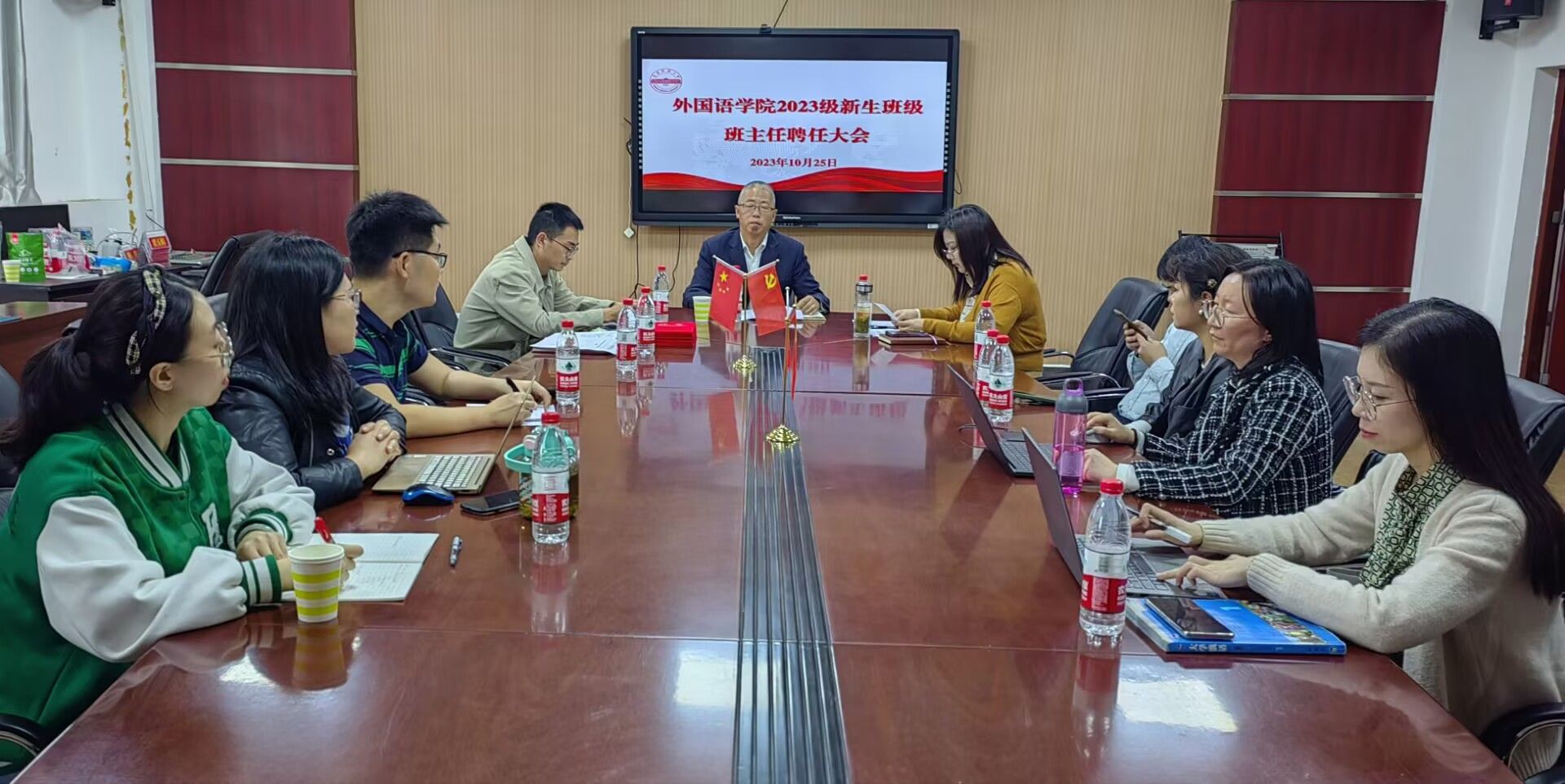 10月26日,beat365平台唯一官网2023级本科班班主任聘任大会于外语楼304会议室举行,学院党委书记李亦亮出席会议,新生班级全体辅导员和班主任参加会议,会议由学院党委副书记何媛君主持。