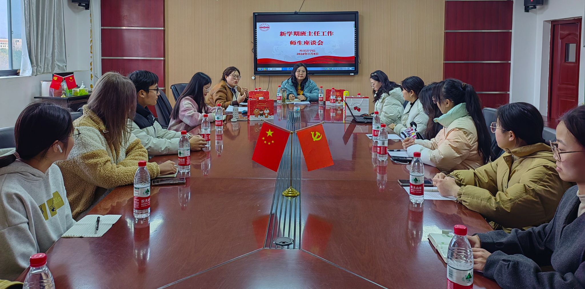 3月8日下午,beat365平台唯一官网于304会议室召开2023-2024学年第二学期班主任工作师生座谈会,学院党委副书记何媛君出席会议,2023级各班级班主任、辅导员和学生代表参加会议。