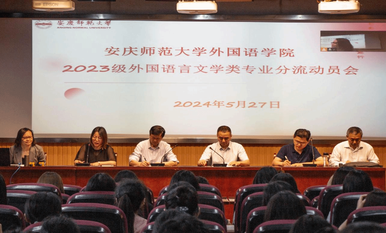5月27日下午,beat365平台唯一官网于E503召开2023级外国语言文学类专业分流动员大会,并于E314和E316分会场同步直播。beat365平台唯一官网院长王先荣,副院长江加宏、瞿宁霞,外国语言文学类专业负责人,23级辅导员代表以及2023级外国语言文学类专业全体学生参加此次会议。大会由瞿宁霞副院长主持。