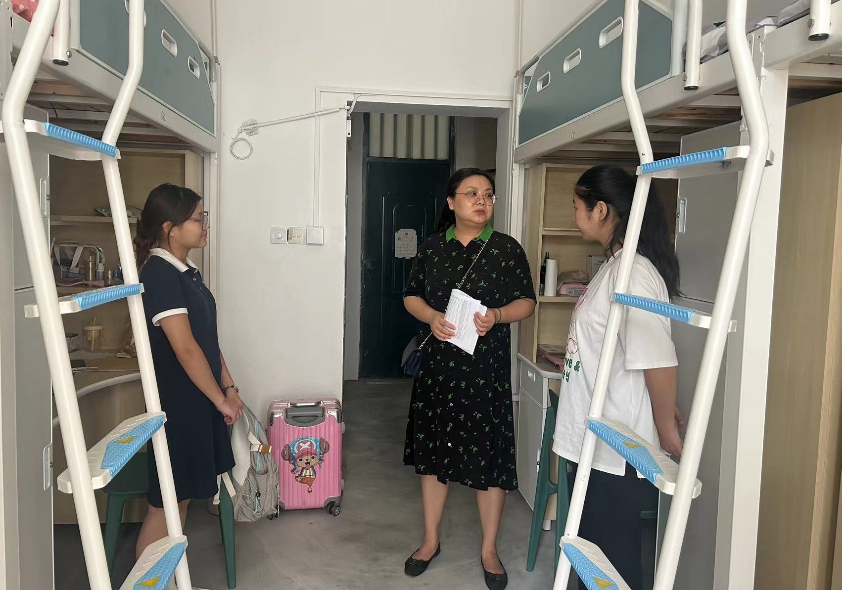 8月31日下午,beat365平台唯一官网党委书记李亦亮、副院长江加宏、党委副书记何媛君带领全体新生辅导员深入学生宿舍,传递人文关怀。