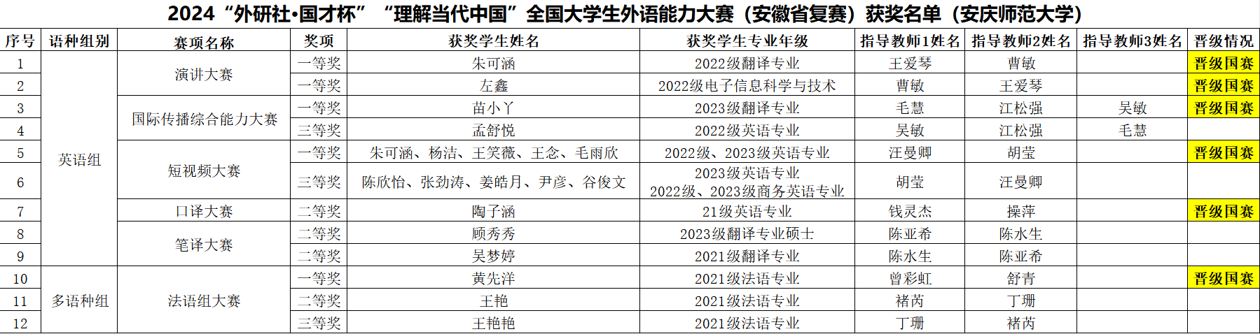近日,2024年“外研社·国才杯”“理解当代中国”全国大学生外语能力大赛安徽省决赛圆满落下帷幕。beat365学子在英语组演讲赛、综合能力赛、口译赛、短视频赛和多语种(法语)赛中共斩获一等奖5项、二等奖4项、三等奖3项。