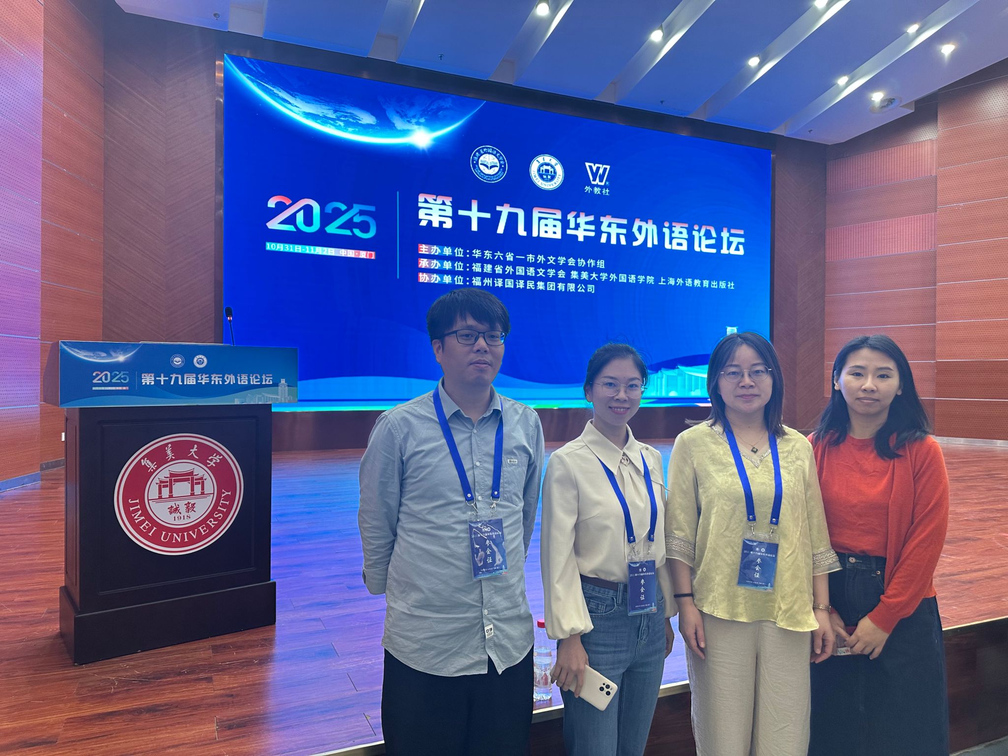 2025年10月31日至11月2日,第十九届华东外语论坛在集美大学顺利举办。beat365平台唯一官网副院长瞿宁霞和3名教师代表应邀参加论坛。
