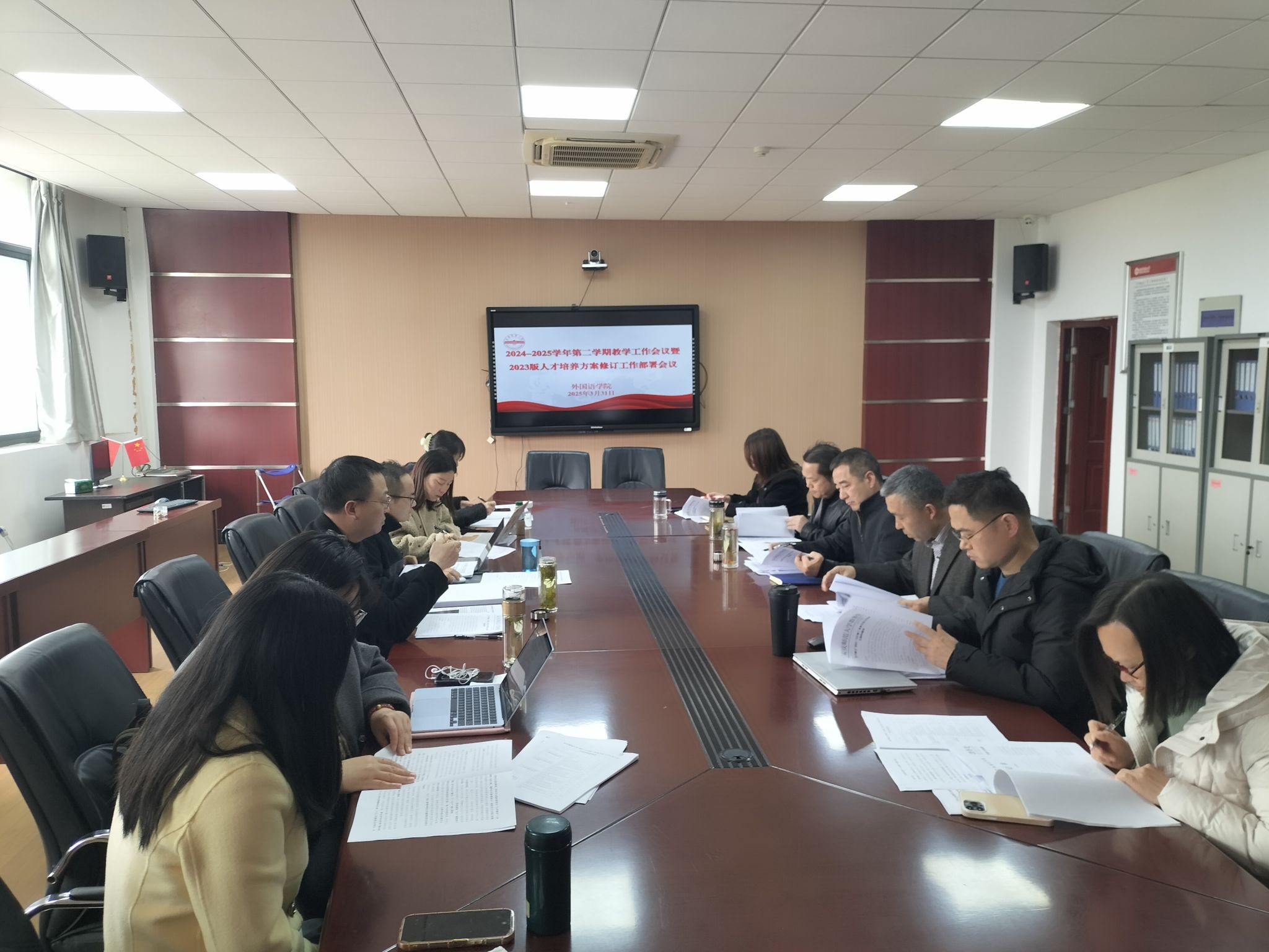 徐华胜强调,本科人才培养方案修订和 AI 课程建设是学院落实立德树人根本任务、推进教育教学改革的重要抓手。 他要求全体教师:一要提高政治站位,深刻认识培养方案修订工作对学院内涵式发展的战略意义;二要强化责任担当,严格对标《教育强国建设规划纲要》等文件精神,将 "AI+" 理念深度融入人才培养全过程;三要注重协同创新,加强跨学科交流合作,着力培养兼具国际视野与 AI 素养的复合型外语人才。