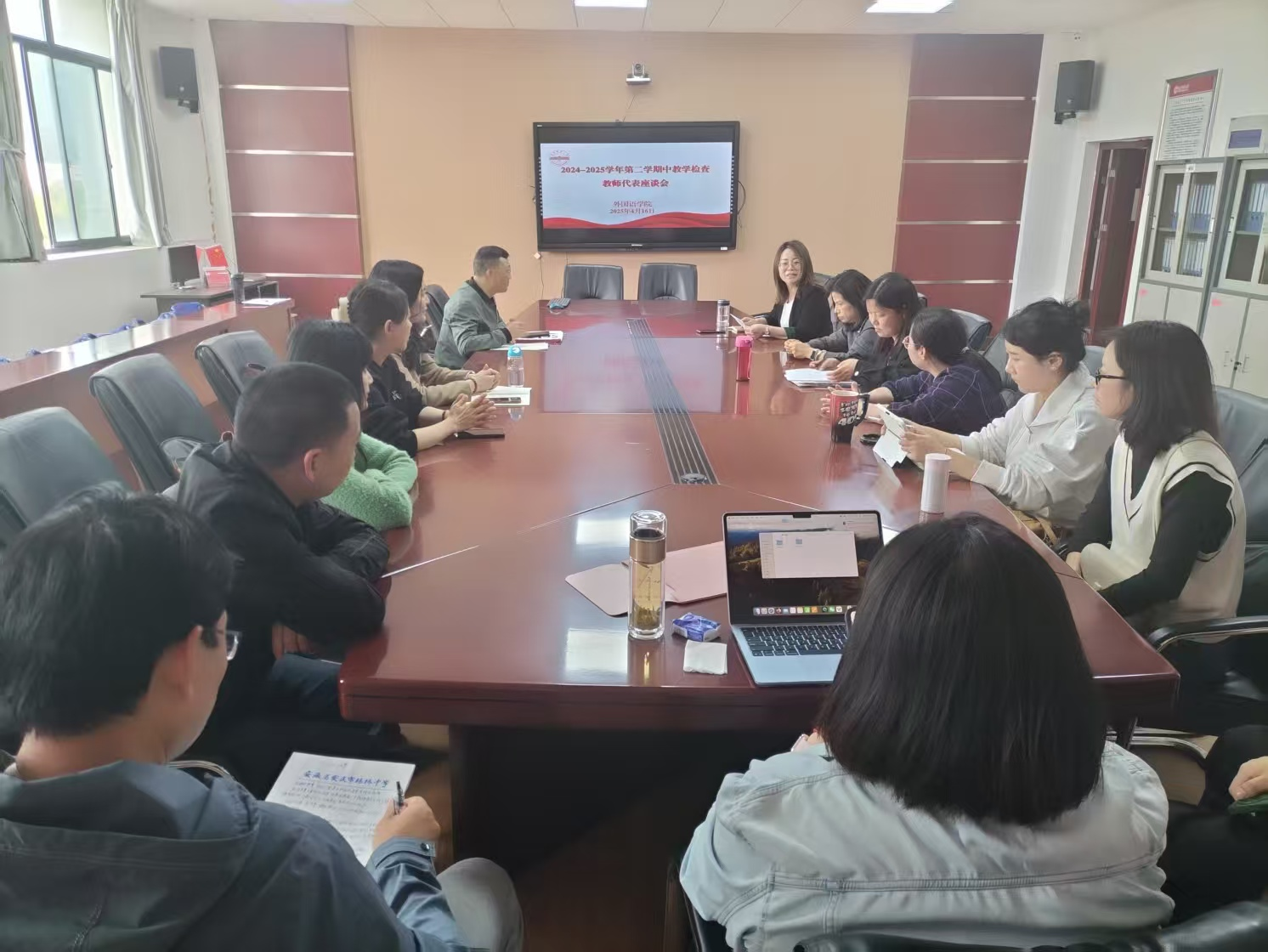 为深入了解学期中本科教学工作情况,进一步强化教学质量监控,切实提升教学水平,根据教务处《关于开展 2024-2025 学年第二学期期中教学检查工作的通知》文件要求,beat365平台唯一官网于4月中下旬分别在 E304 会议室和 E314 教室召开期中教学检查师生代表座谈会。学院党委副书记、副院长、专业课和公共课教师代表、非英语专业学生代表以及外语类专业学生代表参加了会议。