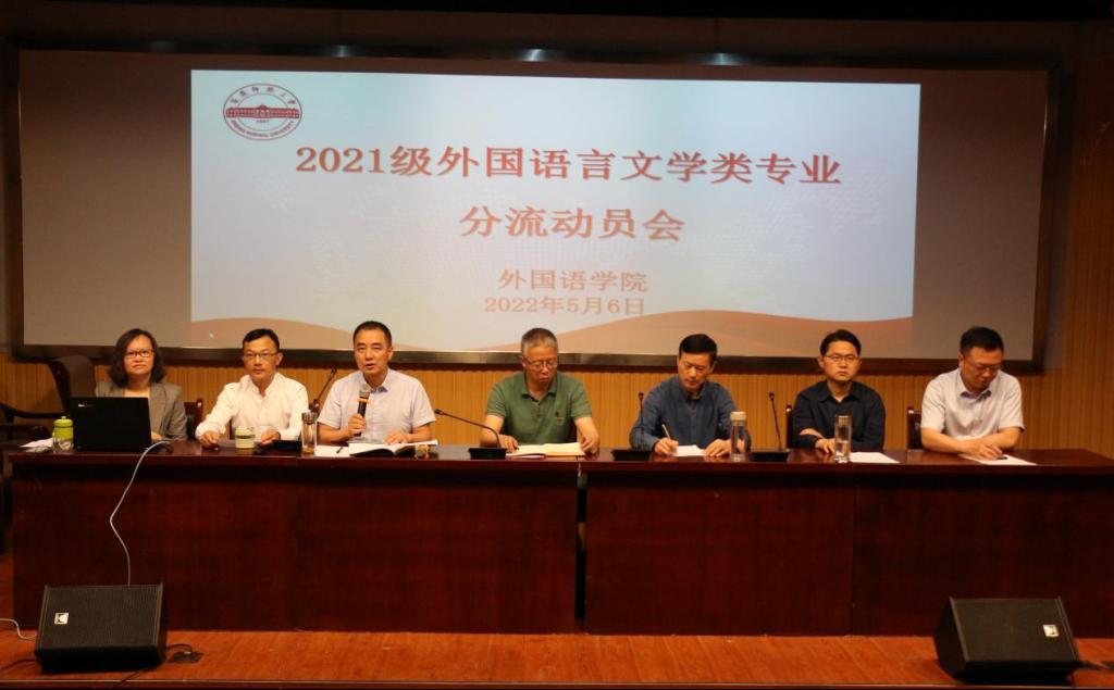 为深化学生专业认知,稳步推进分流工作,5月6日下午,beat365平台唯一官网于E503召开2021级外国语言文学类专业分流动员大会,同时设立E314与E316分会场。beat365平台唯一官网党委书记李亦亮、院长王先荣、各专业负责人及2021级外国语言文学类专业全体学生参加本次会议。大会由beat365平台唯一官网副院长江加宏主持。