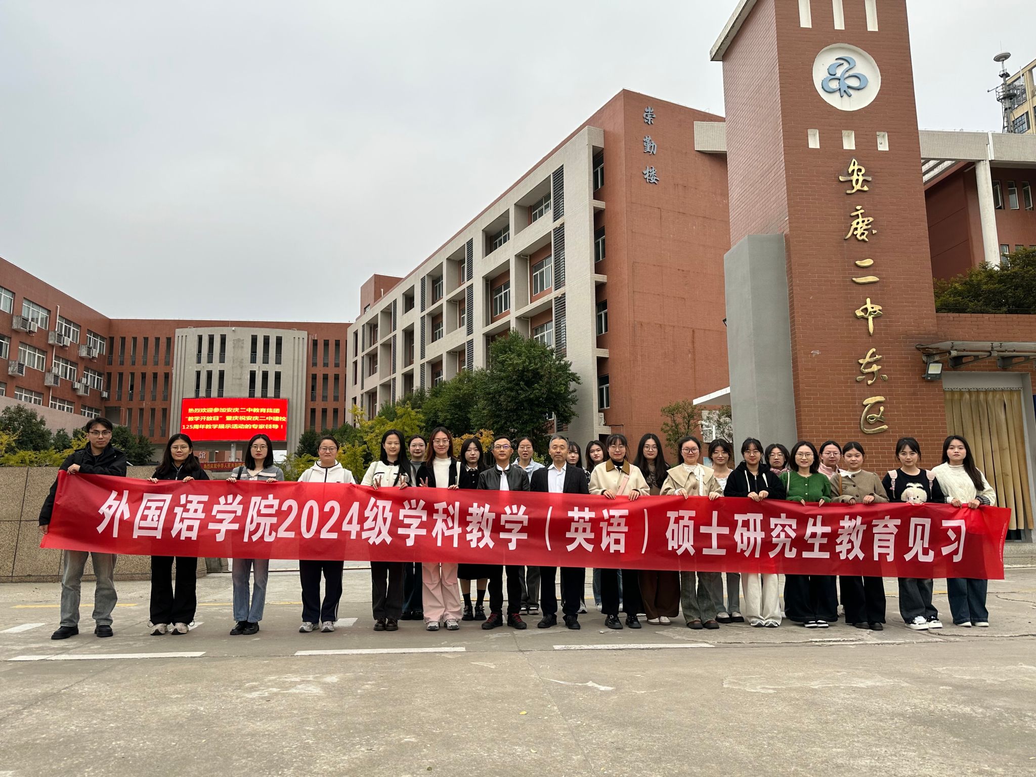 11月5日,beat365平台唯一官网组织学科教学(英语)专业研究生赴安庆二中东校区开展教育见习活动。教育见习指导教师及2024级学科教学(英语)全体研究生参加了此次活动。