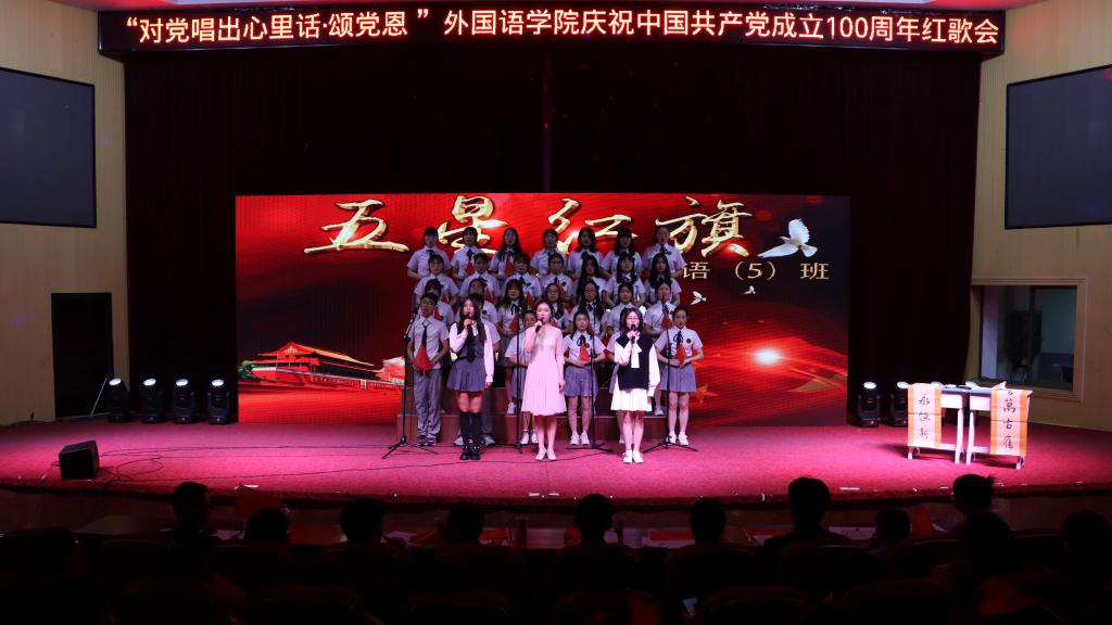 4月18日晚,beat365平台唯一官网beat365平台唯一官网开展“庆祝中国共产党成立100周年红歌会”活动,12个班级唱响红歌颂党恩,图书馆东厅内歌声悠扬。学院院院长王先荣、党委副书记夏斐等400余名师生共同观看。