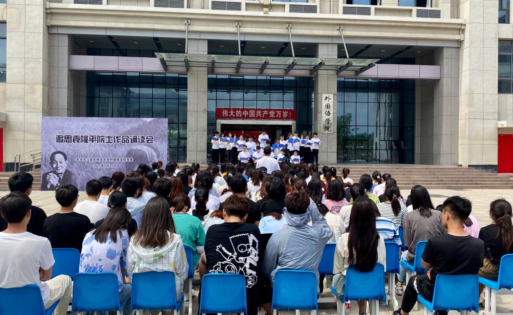 活动开始,师生集体默哀一分钟,表达对袁隆平院士的哀思。随后学院全体学生党支部书记、辅导员、主持人队为大家带来《禾下乘凉梦 一梦逐一生》、《禾下乘凉梦,不悔是初心》、《我有一个梦》、《妈妈,稻子熟了!》等作品,一起缅怀袁老为了实现“把中国人的饭碗牢牢端在自己手中”这一铮铮誓言的艰辛付出。