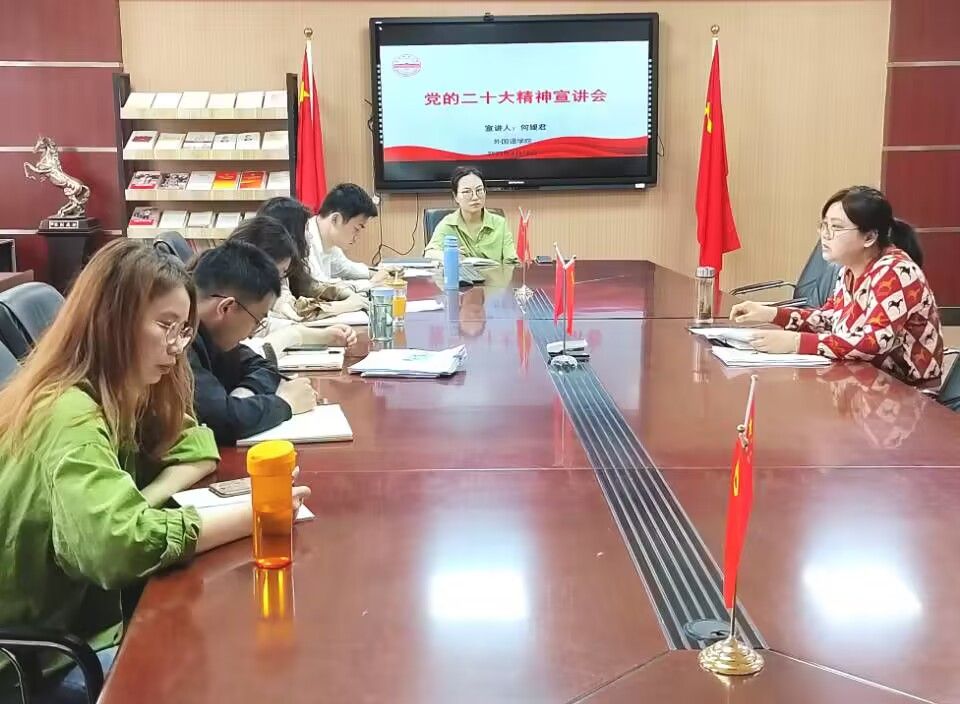 何媛君指出党的二十大是在全党全国各族人民迈上全面建设社会主义现代化国家新征程、向第二个百年奋斗目标进军的关键时刻召开的一次十分重要的大会。党的二十大回顾总结了过去五年的工作和新时代十年的伟大变革,阐述了开辟马克思主义中国化时代化新境界、中国式现代化的中国特色和本质要求等重大问题,对全面建设社会主义现代化国家、全面推进中华民族伟大复兴进行了战略部署。党的二十大在政治上、理论上、实践上取得了一系列重大成果,深入学习宣传贯彻党的二十大精神,是当前和今后一个时期全党的首要政治任务。