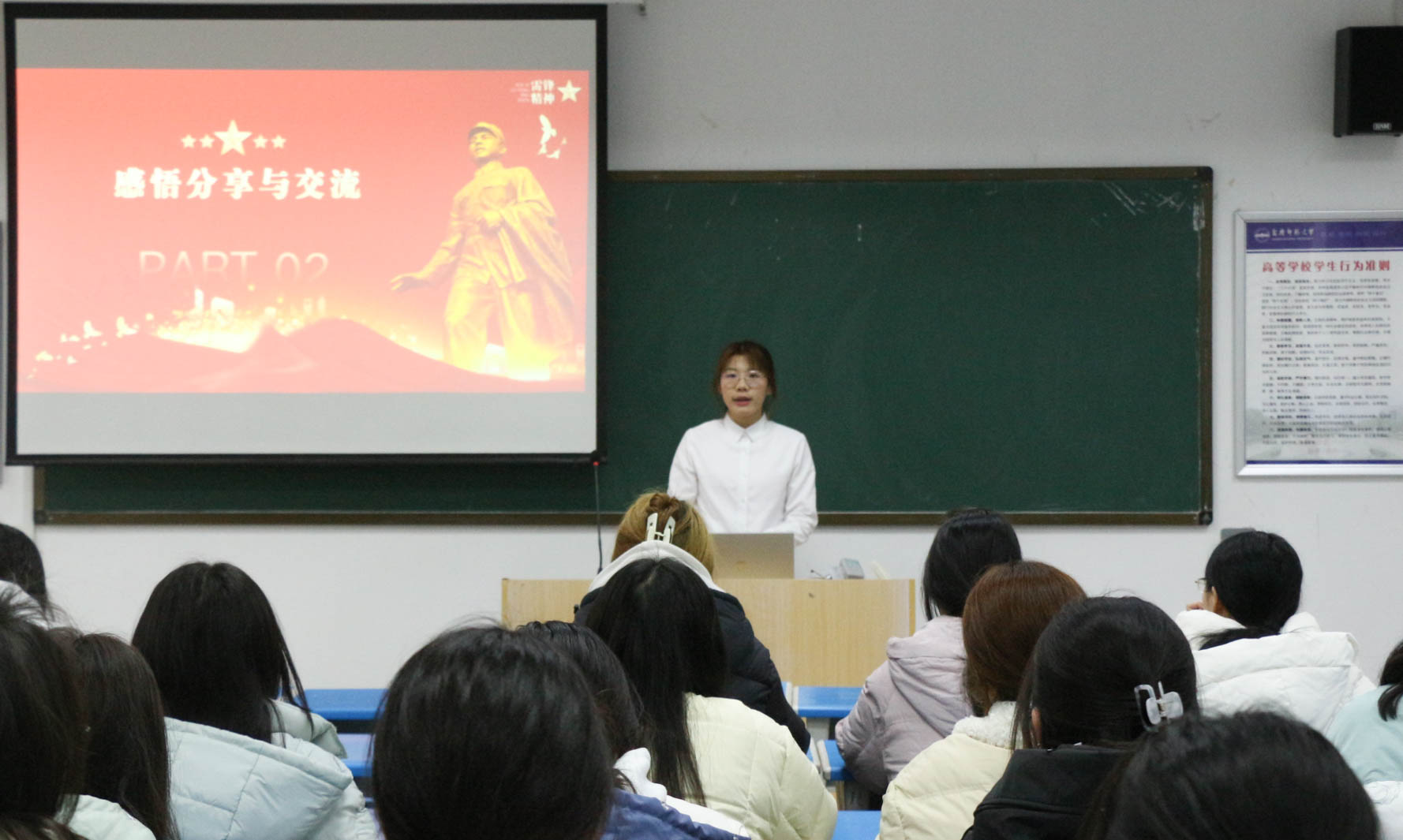观影结束后,学院举办了双语研讨交流会。师生们围绕“新时代如何传承雷锋精神”这一主题,用中英双语展开热烈讨论。同学们结合自身经历,分享了观影感受,并就雷锋精神在当代社会的意义、青年大学生如何践行雷锋精神等话题进行了深入探讨。