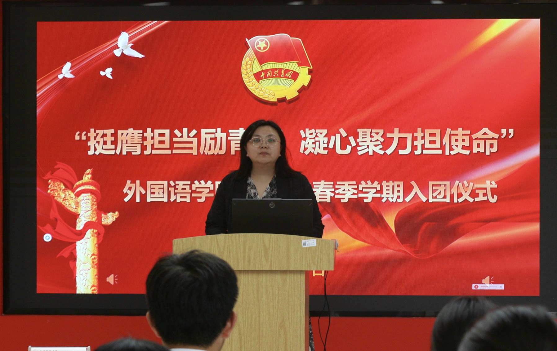 仪式在庄严的国歌声中拉开帷幕,何媛君向新发展的团员们表示热烈的祝贺。她表示,入团是前进路上新的起点,要继续努力追求共产主义理想,争取更大的进步,希望各位新发展团员勤于学习,做有理想的时代青年;勇于负责,做敢担当的时代青年;艰苦奋斗,做有作为的时代青年;博学善行,做知行合一的时代青年。将自己的人生追求与人民的需要紧密相连,做无愧于先辈的嘱托、无愧于党的关怀、无愧于祖国和人民的殷切期待的人。