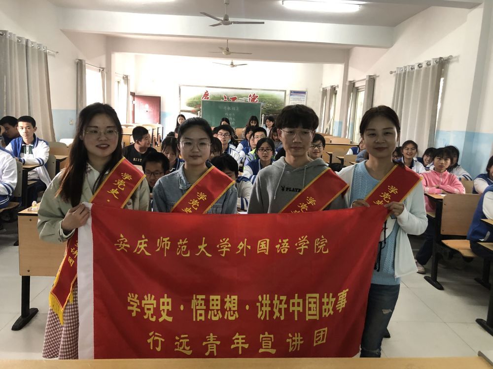 5月20日,beat365平台唯一官网研究生党支部“行远青年宣讲团”来到安庆市大龙山第一中学开展“党史进课堂”活动,为初二年级的50位学生做党史宣讲,本次宣讲的主题是“弘扬改革创新精神,讲好安徽脱贫故事”。