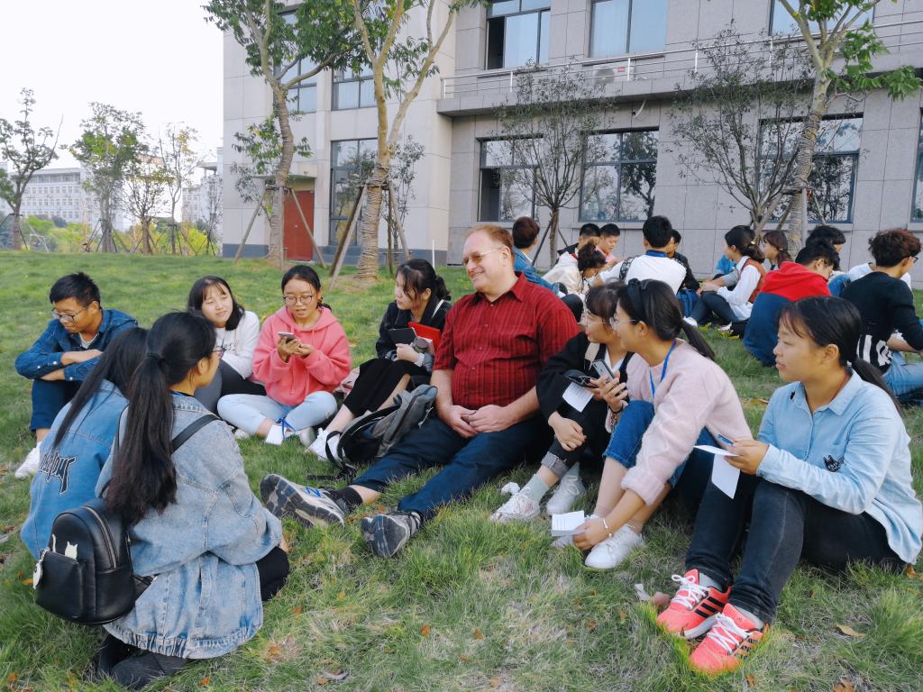 你尝试过在室外与别人用英语聊天吗?10月31日下午,大学生英语爱好者协会在beat365平台唯一官网北门草坪上成功举办了户外英语角活动,来自不同学院不同专业的30余名同学和外教Dave共同参与了本次活动。