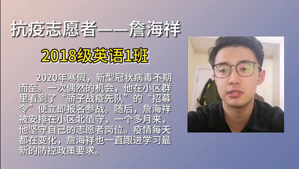 志愿者代表詹海祥主要负责社区的体温测量、信息登记、防控宣传等工作,回顾自己在抗疫路上的酸甜苦辣,他感慨道:“只要每个人都愿意出一份力,所有的困难都会迎刃而解。”