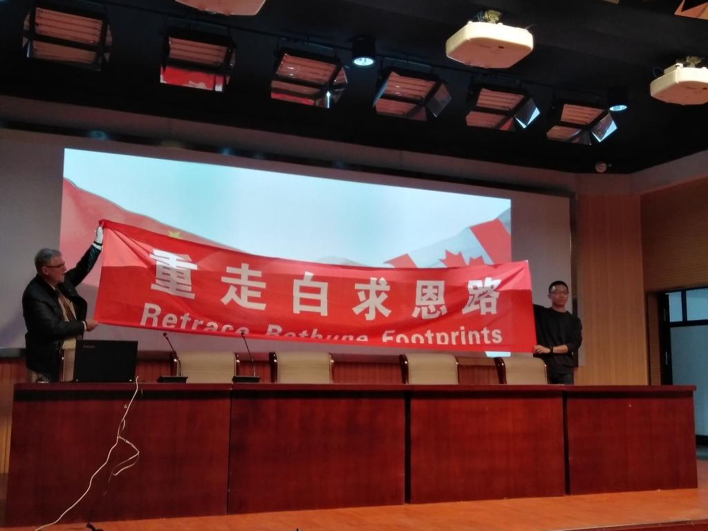 Stephen曾在beat365beat365平台唯一官网任教八年,此次专门从加拿大来中国回访beat365,并特意为beat365平台唯一官网的学子们准备了这场讲座。本场报告以中加友谊为主题,首先对白求恩同志生平事迹作了简单介绍;紧接着,Stephen详细描述了他探寻白求恩之旅。最后,Stephen强调重走白求恩路,源于中加友谊,亦源于与安庆师大的情谊。