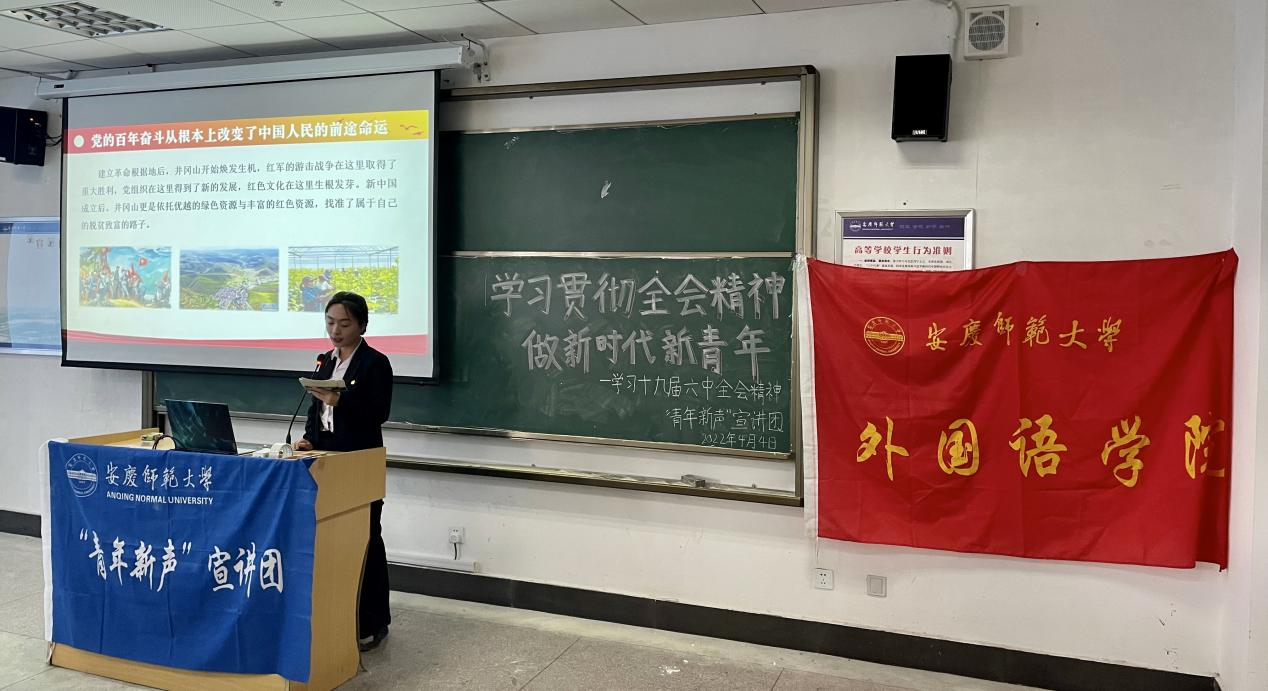 为贯彻落实十九届六中全会精神,4月4日下午,学校“青年新声”宣讲团在E314开展题为“学习贯彻全会精神,做新时代新青年”的宣讲活动,beat365平台唯一官网一百余名学生到场听讲。