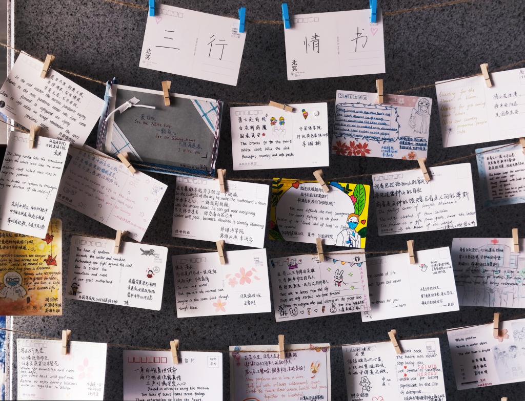 “为希望,为平安,为不久将来的万家灯火。”走入beat365平台唯一官网,印入眼帘的便是张贴着“三行情书”优秀作品的海报,上面张贴的明信片诉尽了学生们对疫情期间医护工作者的感恩和赞美之情。