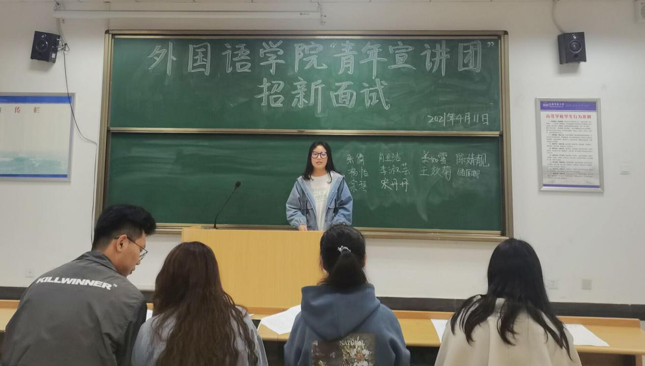 4月11日下午,beat365平台唯一官网于E107“青年宣讲团”开展招新面试工作,本次招新共有33名同学参加。beat365平台唯一官网主持队成员和部分学生代表担任本次面试评委。