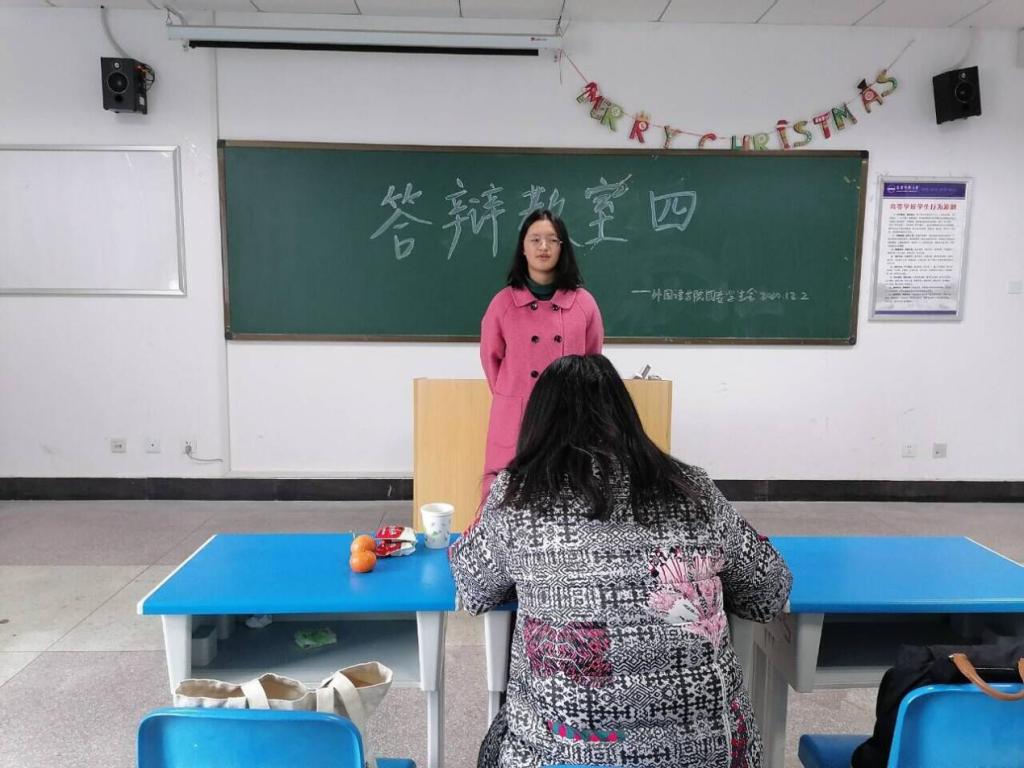正式答辩开始前,同学们有序地从读书园工作人员处领取《beat365平台唯一官网学生读书情况验收登记表》,按照顺序依次进场。现场答辩时,答辩同学于10分钟内使用英语或法语向主持老师汇报所读书目,介绍读书笔记的主要内容。随后,评委老师根据各同学的答辩内容提问,同学们一一作答,条理清晰,见解深刻。据悉,答辩选手的成绩将分为A、B、C、D、E五个等级并反馈给辅导员,届时优秀的读书心得也会提供给同学们借鉴。