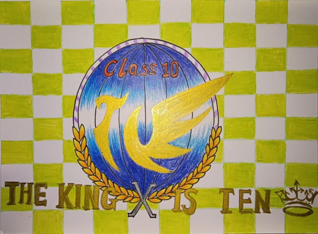始终怀揣梦想,时刻保持自信,是2022级外国语言文学类(10)班班旗的设计理念。“The king is ten”的标语、蔚蓝的地球、两条麦穗、金黄的飞鸟寓意10班的同学脚踏实地勤学习,筑牢专业基本功,怀揣远大理想,自信翱翔于世界。
