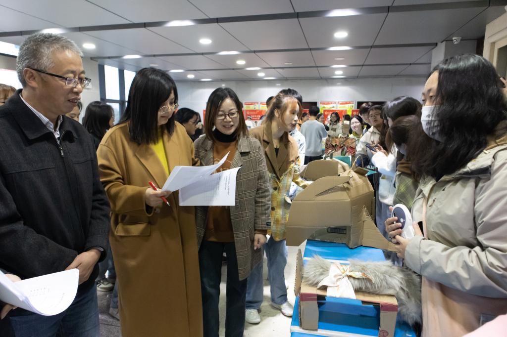 经过评委和现场学生投票,商务英语专业2021(1)郑张影团队的“小狗集市”和英语专业2021(4)班的陈伲伶团队的“拜拜狗”获得最佳创意奖,学科英语专业2022级的研究生张静团队的“单身狗”获得最佳人气奖。
