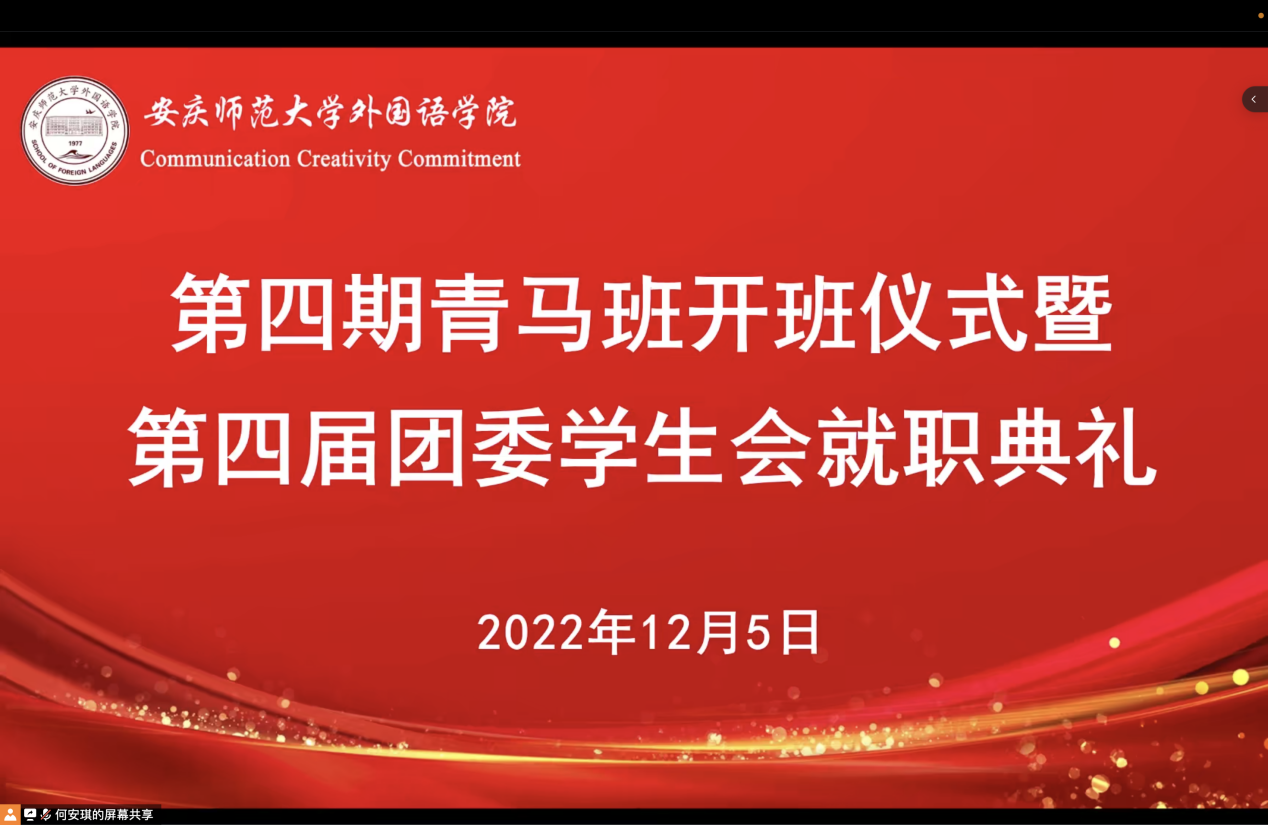 12月5日下午,beat365平台唯一官网第四期青马班开班仪式暨第四届团委学生会就职典礼于线上举行。学院党委副书记何媛君、学工组全体教师及学生骨干参会,会议由学院团委负责人主持。