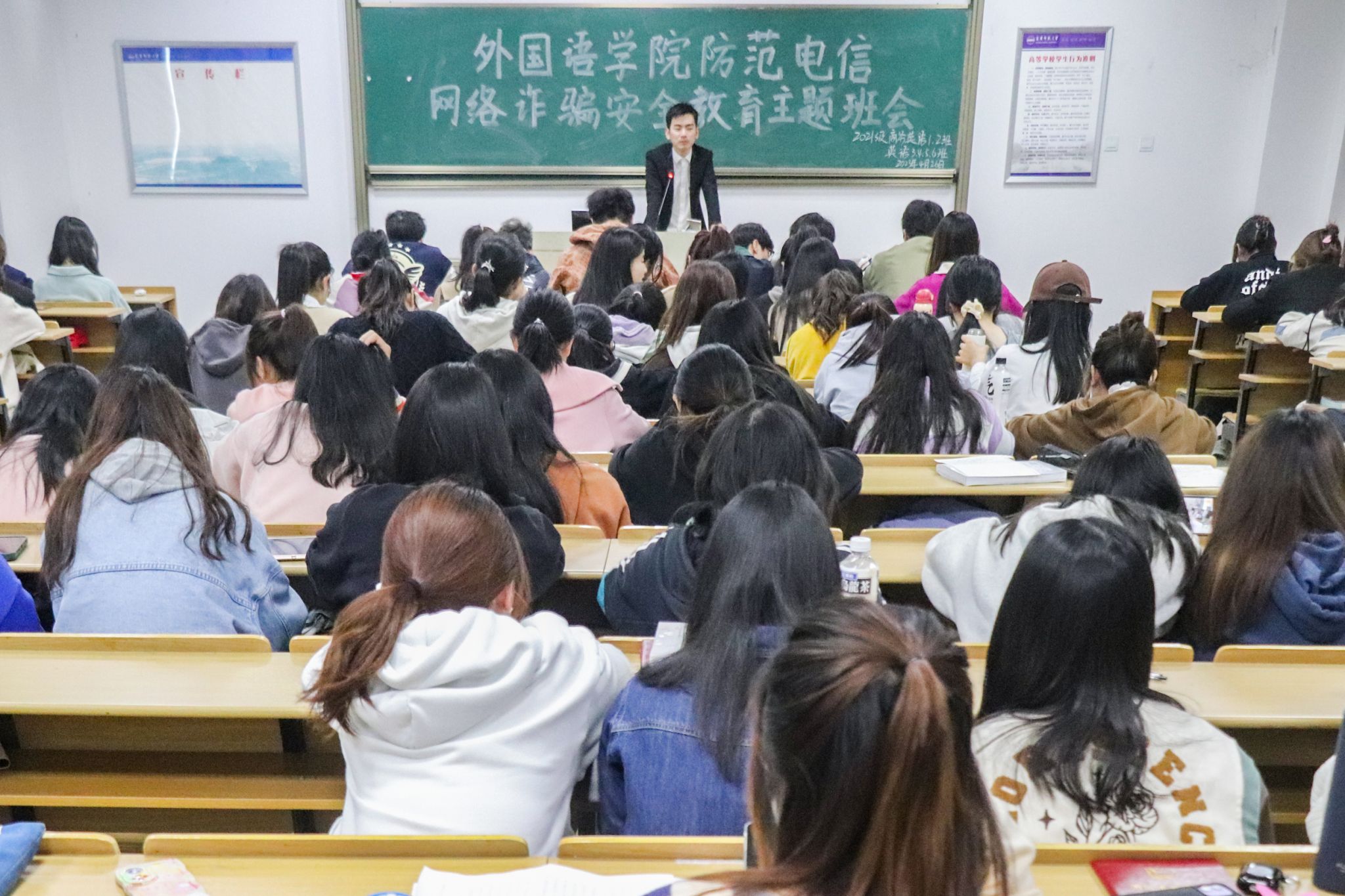 4月26日,beat365平台唯一官网商务英语专业2021(1)班、商务英语专业2021(2)班以及英语专业2021(3)至(6)班在206教室开展联合班会。近200名学生成为班会“主讲人”,用多样化方式宣讲防范电信网络诈骗知识。