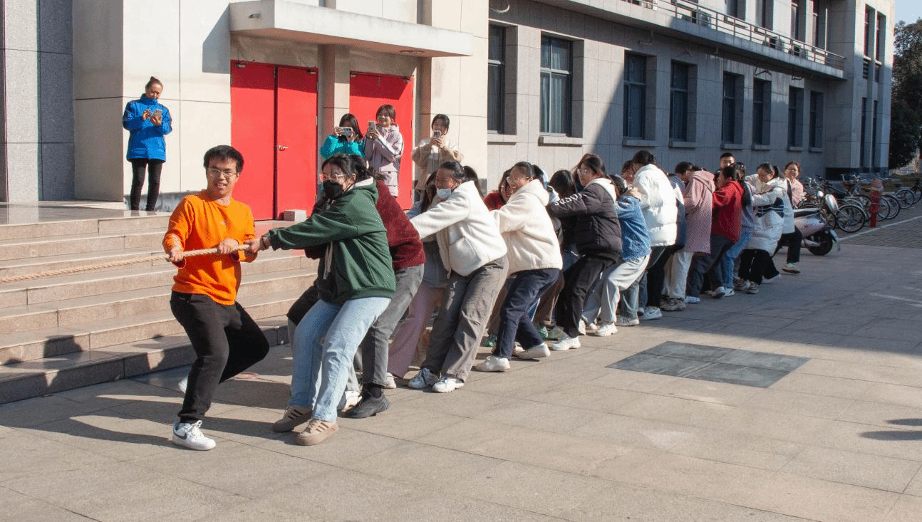 “比赛分为三轮,采取一局定胜负制,在规定时间内把标志拉过本队区域即为胜利,反之为平局则加赛一轮。”裁判员介绍完规则后,比赛正式揭开帷幕。经过前两轮的激情拼搏,最终2023级外国语言文学类专业4班和6班进入到决赛。“马步半蹲、双手握绳,保持伸展状态。”随着红线缓缓越过分界线,外国语言文学类专业2023(6)班学生最终扭转僵持局面,摘得桂冠,成为赛场上的“常胜将军”。