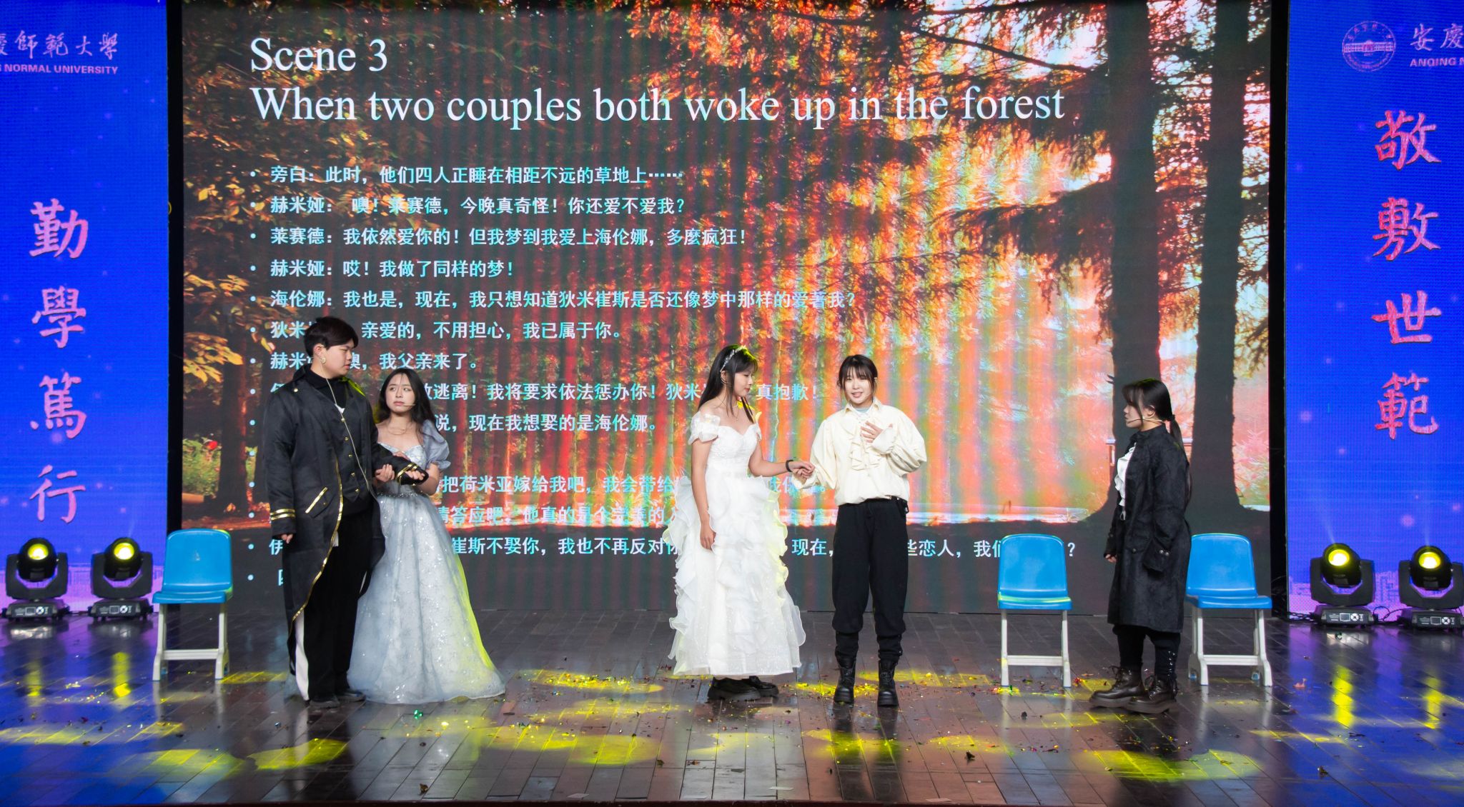 “今日痛饮庆功酒,壮志未酬誓不休。”说唱《庆功酒》热血沸腾,字字传达出激情豪迈之势;学院礼仪队带来的文化展示《东方之珠》韵味十足,尽情彰显了“故事满满”的港风文化;优雅而富有节奏感,舞步轻盈而有力,学院拉丁舞团向观众展现了热情如火的拉丁舞魅力;铿锵有力的朗诵《青春正当“燃”》结合beat365平台唯一官网学子在暑期三下乡中的优异表现将学子们的青春光彩纵情绽放;精美绝伦的外文话剧《仲夏夜之梦》通过紧张的故事情节、精湛的台词演技将观众带到了他们的世界中,同悲同喜,感人至深;由法语专业师生合唱团带来的法语版歌曲《我和我的祖国》以良好的台风、自然大方的表演状态赢得了在场观众的阵阵掌声……